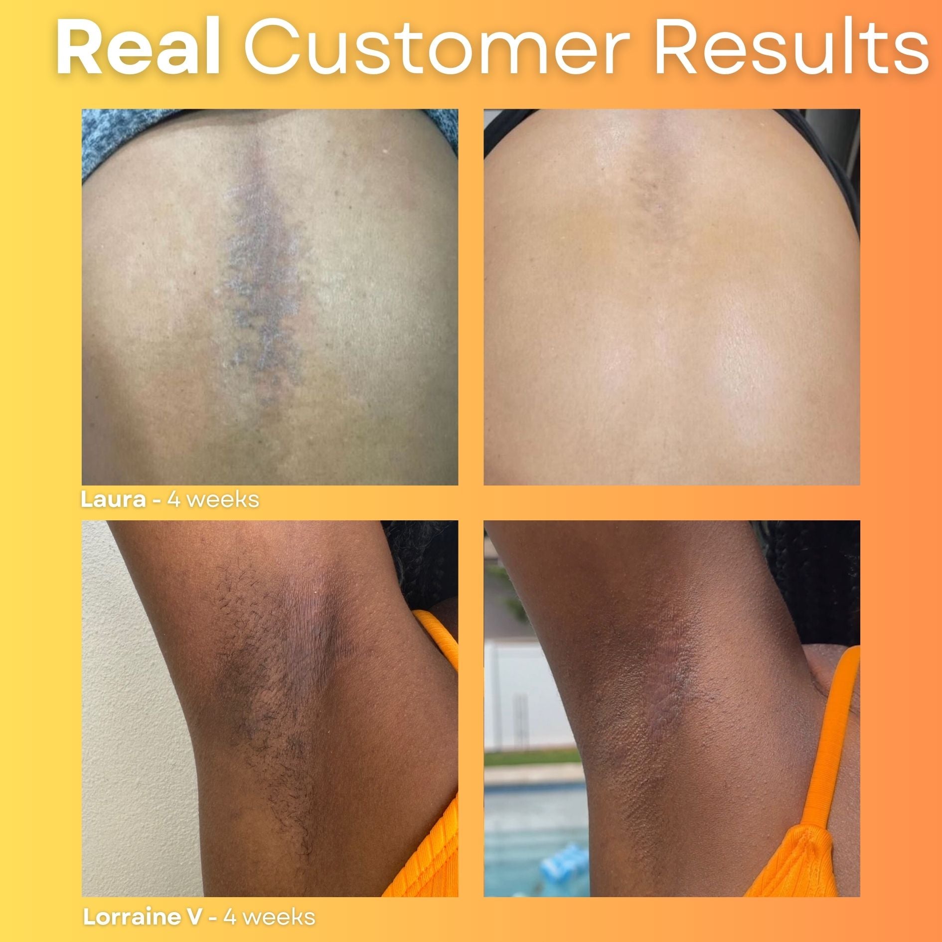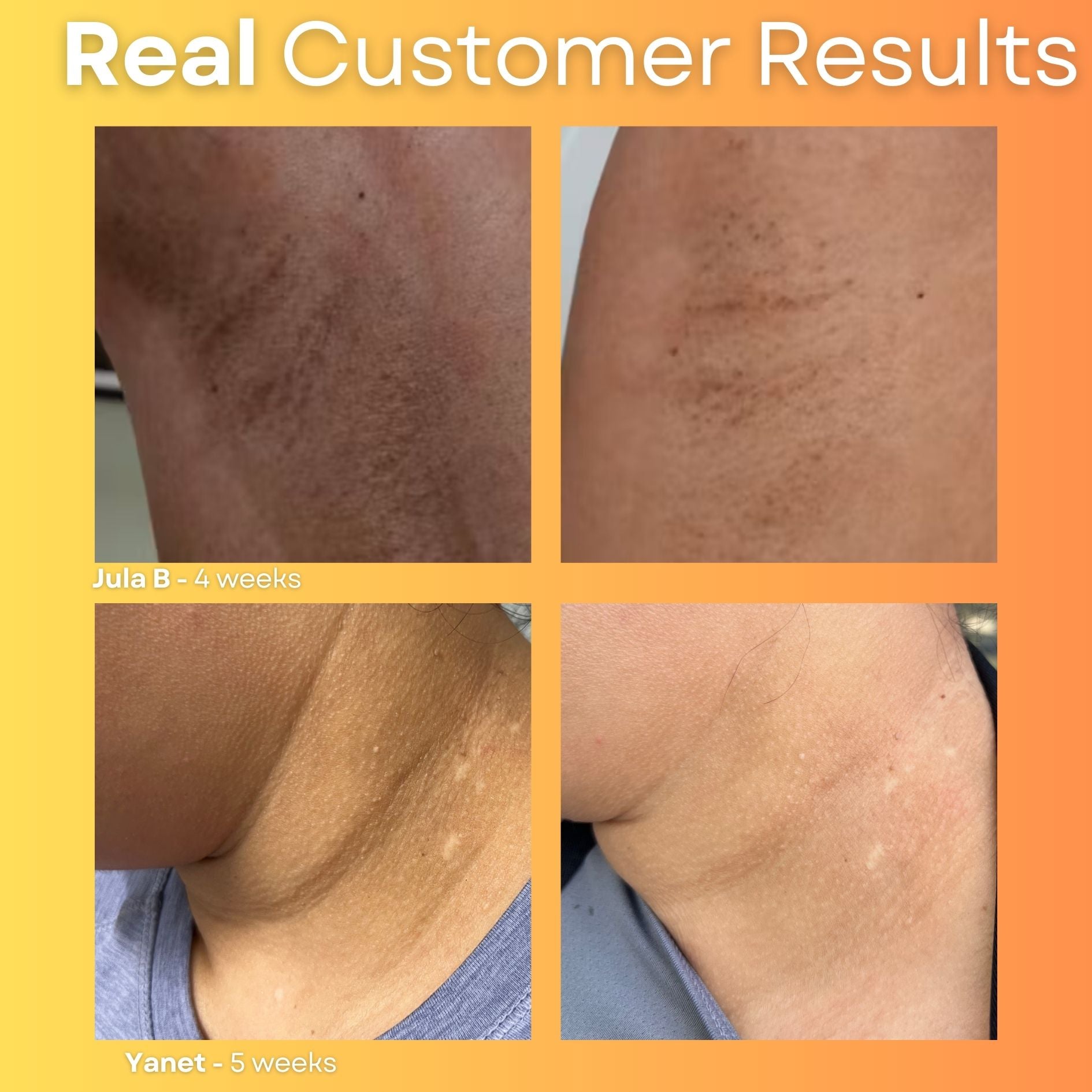 Witness a remarkable transformation in as little as four weeks with our powerful, dermatologist-tested treatment, specifically formulated to fade dark marks and eliminate hyperpigmentation effectively.†