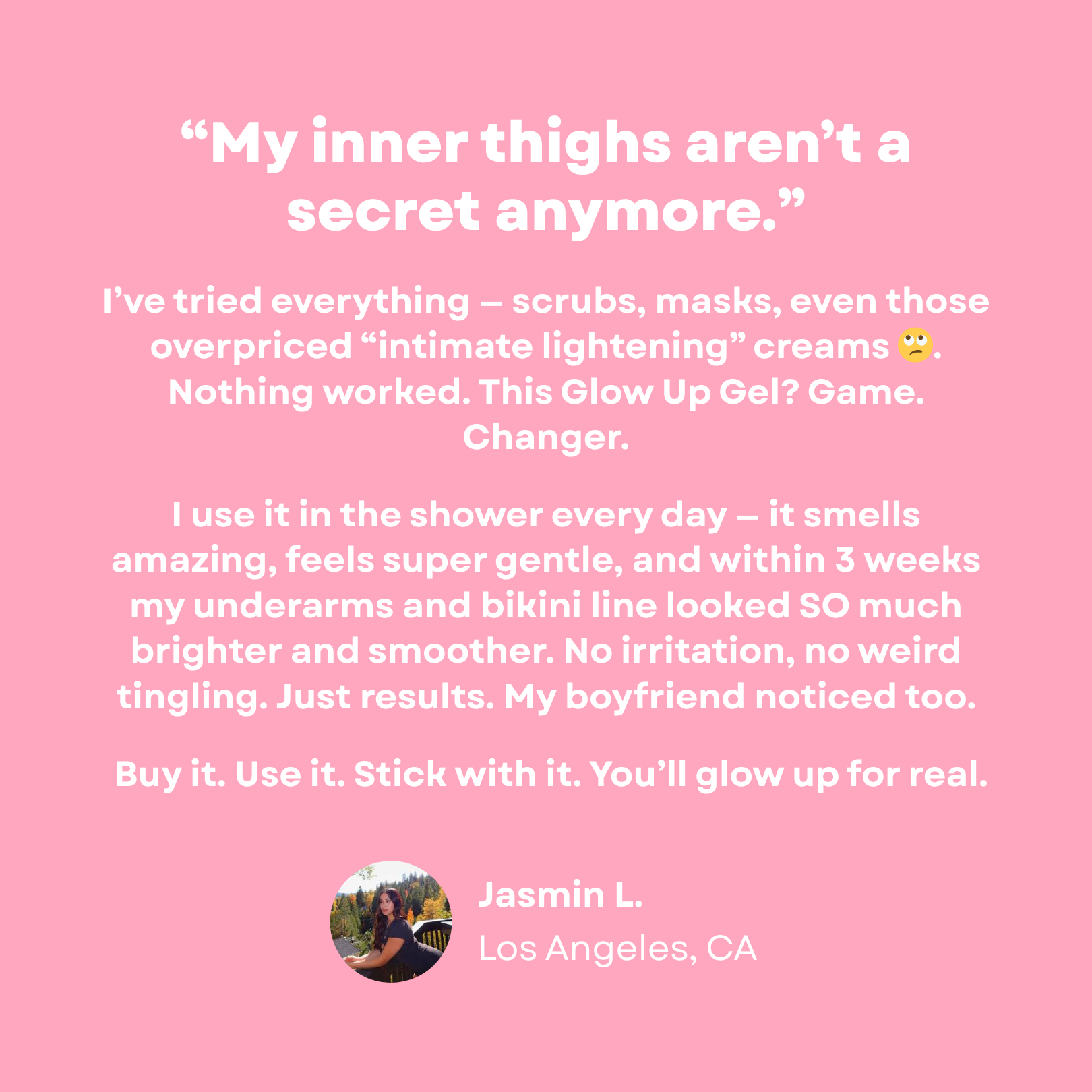 The Glow Up Gel is your all-in-one brightening body cleanser powered by Kojic Acid, Turmeric, and Rose Water. This daily foaming gel gently fades dark spots, hydrates dry skin, and smooths out texture, all while being safe for your face, body, and feminine areas. Made with natural, sulfate-free surfactants and a balanced pH of 4.7, it's the clean girl essential for radiant, even-toned skin.