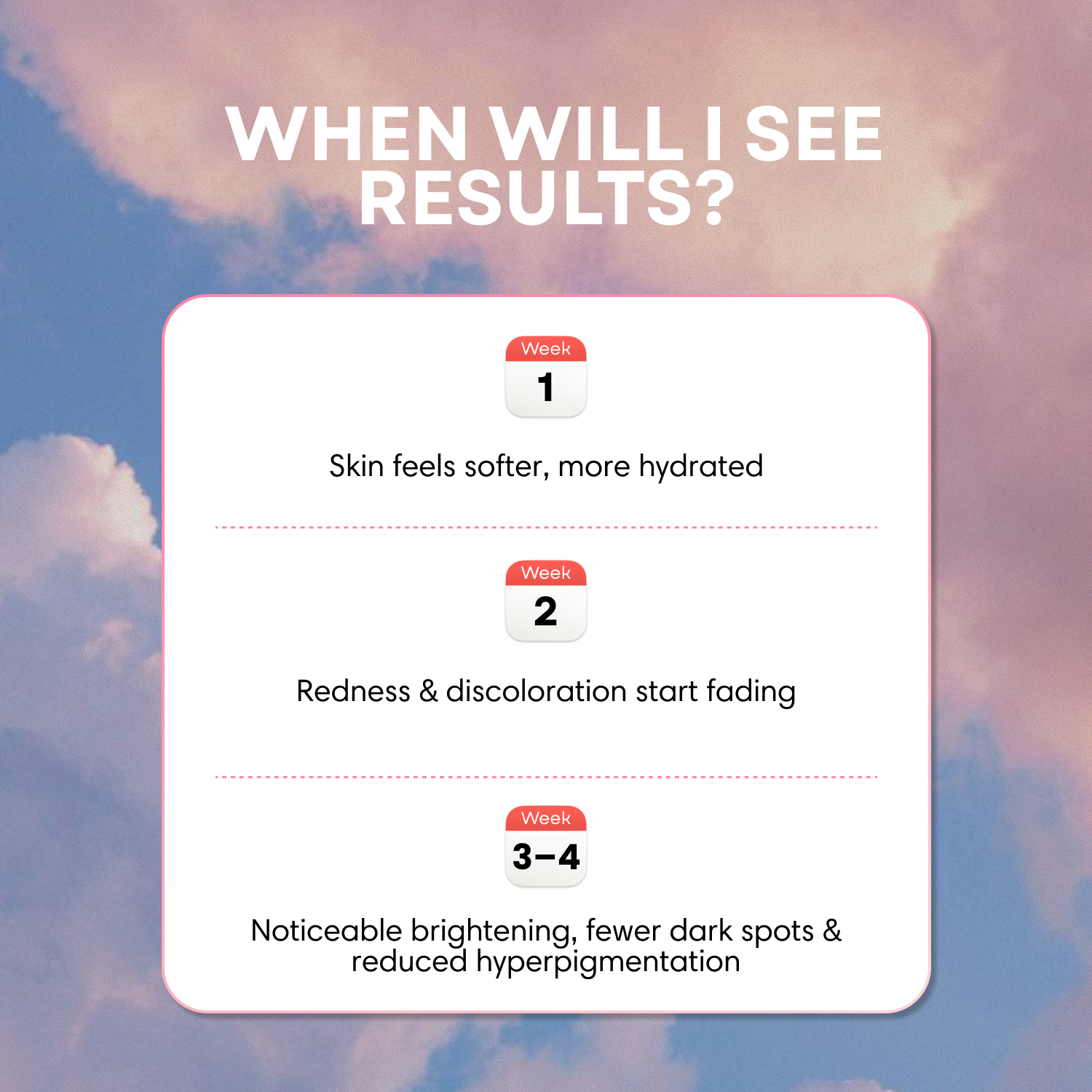 Witness a remarkable transformation in as little as four weeks with our powerful, dermatologist-tested treatment, specifically formulated to fade dark marks and eliminate hyperpigmentation effectively.†