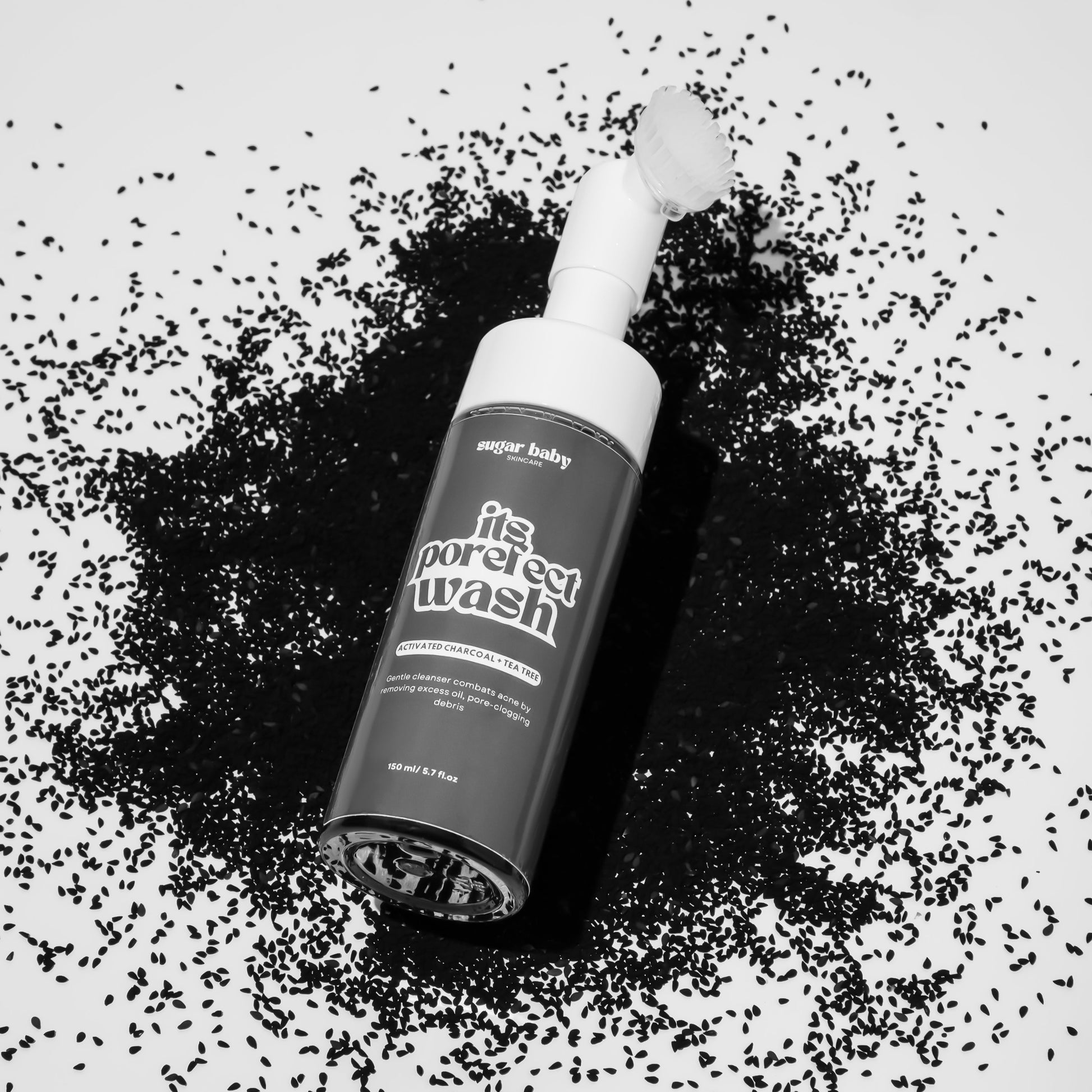 Deep Pore Facial Silicone Pump Cleanser with activated charcoal and tea tree oil.